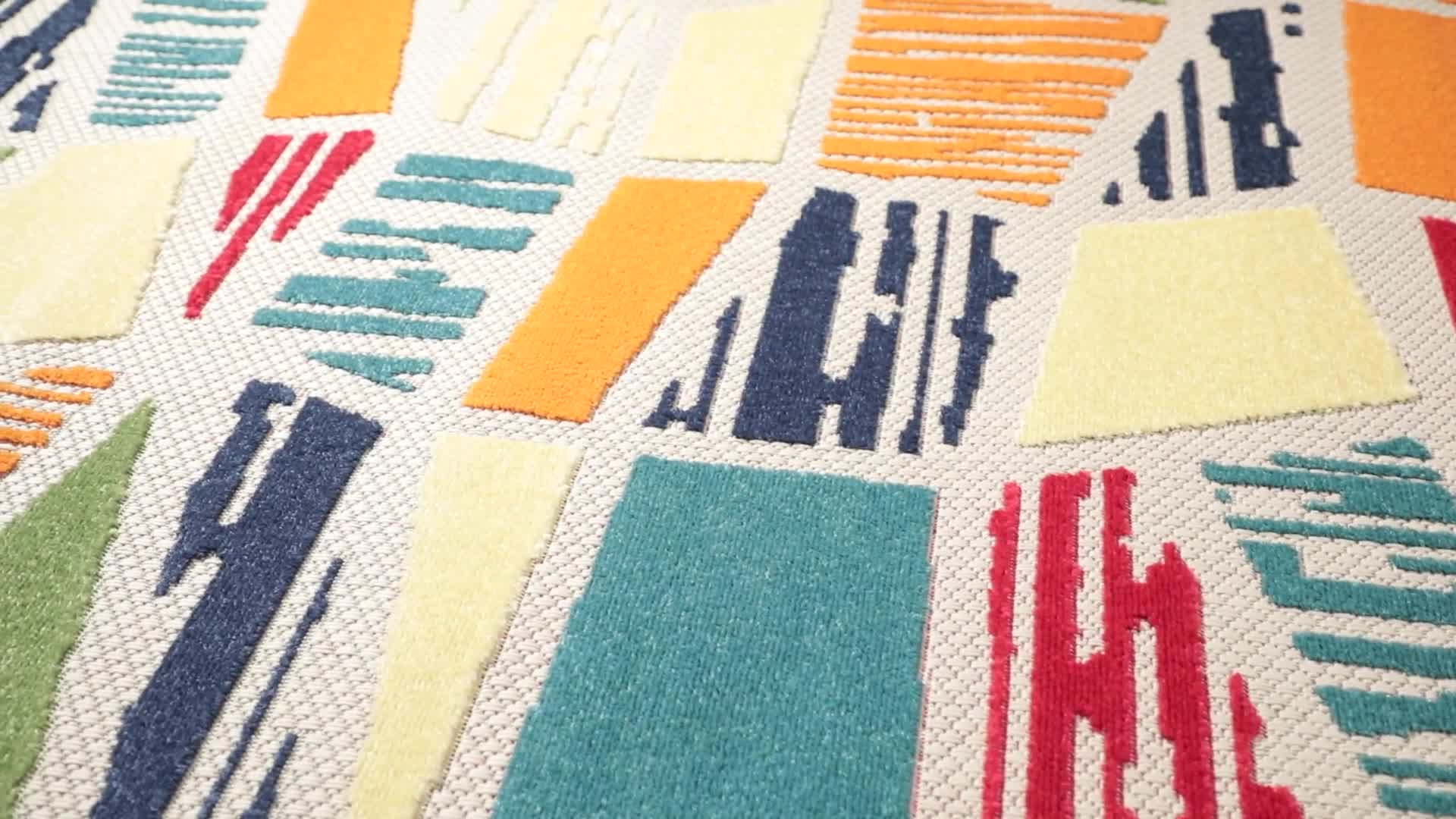 Looking to liven up your indoor or outdoor space? A pop of color can transform any back porch, patio area, or playroom into an oasis for relaxation and fun, and this durable runner is sure to brighten up any area in or around your home. The abstract design, cheerful colors, and unique high-low weaving technique create an exciting multidimensional effect, adding depth and dimension to your favorite indoor or outdoor space. Because these pieces are long-lasting and easy to clean, you can enjoy your favorite space without fear of staining or fading, even in the most high-traffic or spill-prone areas of your home. Each rug is machine made using state-of-the-art, computer-driven looms, and polypropylene yarns create a low profile pile that’s stain resistant and fade resistant. Delight in a modern combination of rich color, surprising comfort, and exceptional durability that fits both your home and your lifestyle effortlessly. For indoor or outdoor use. Imported.